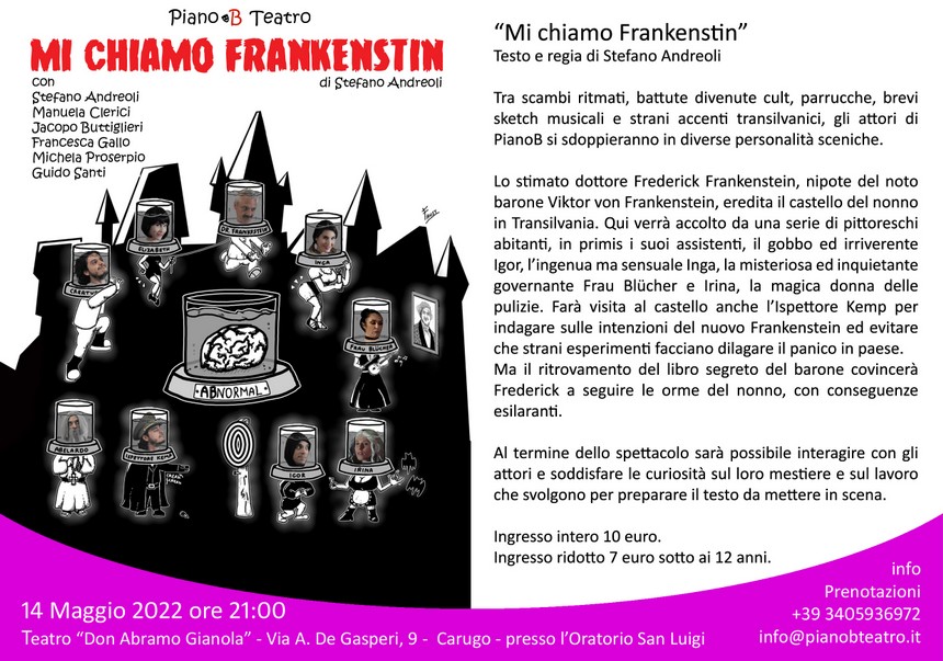 "Mi Chiamo Frankenstin" - Sabato 14 maggio 2022 - Teatro Don Abramo Gianola - Carugo (CO)